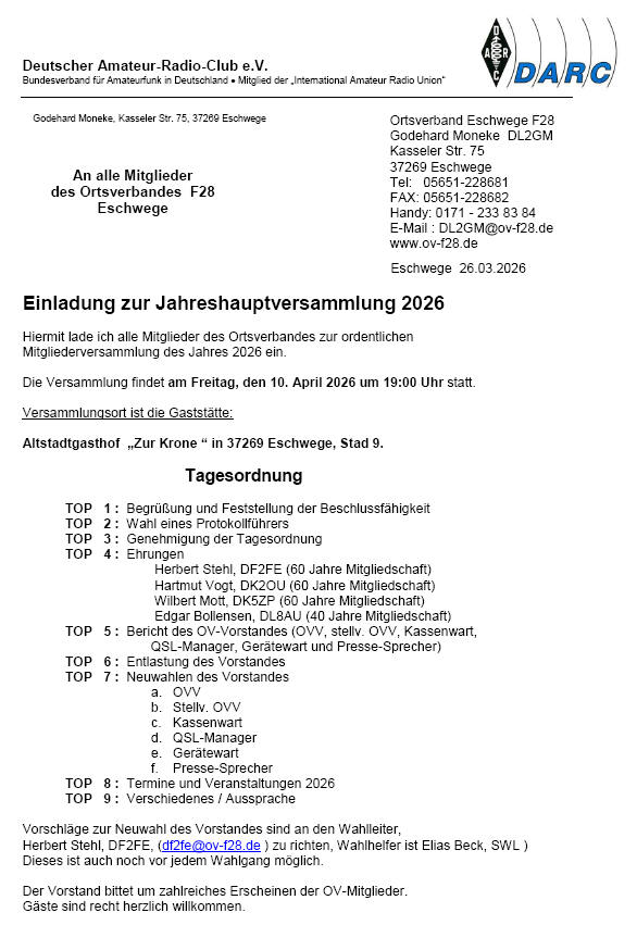 Nächste OV-Versammlungen: Jahreshauptversammlung 10.04.2026